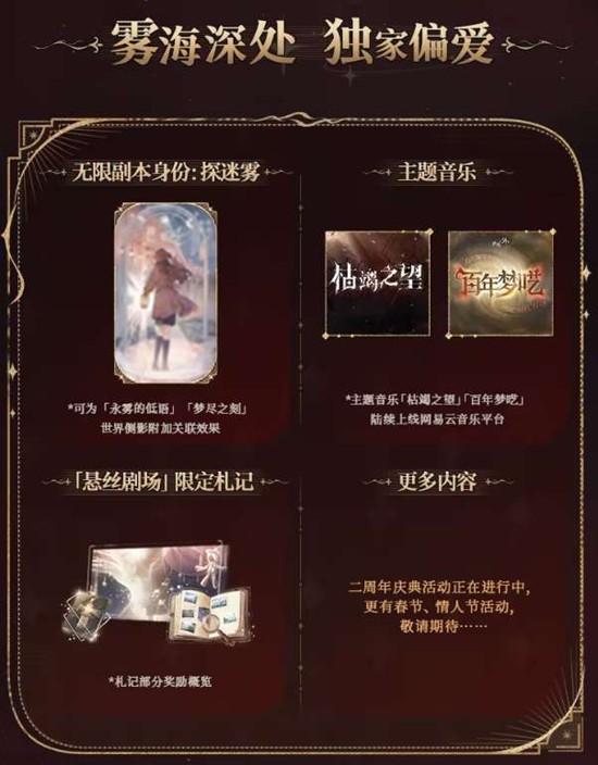 除游戏内活动外,本次"迷失国度"主题的音乐内容也已正式登陆网易云音乐平台。