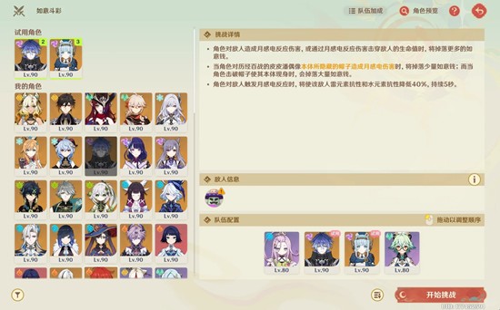 配队:两个试用角色+挂水角色【少女(优)/爱诺(优)/芙芙(优)/…】+风减抗角色【砂糖/万叶/雅科达】或者雷元素角色【伊安珊/菲谢尔】