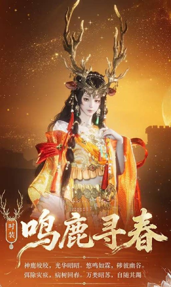 燕云十六声全新聆音套装鸣鹿寻春将于2026年2月6日版本更新后正式上架,鹿寻春取材于敦煌壁画中的神鹿形象,以丹霞为底、石绿点染,鹿影于袖摆间跃动,洒落穿越千年的烟霞与春光。料峭春风拂过鹿角,轻触山野万物,将灵韵与生机撒遍天地。