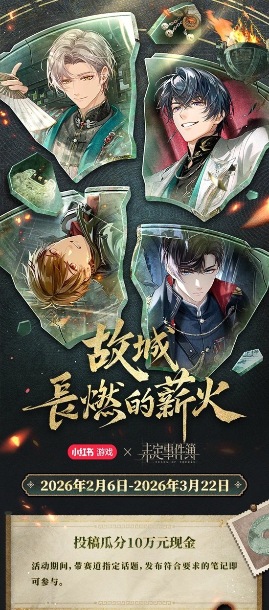 《未定事件簿》「故城长燃的薪火」同人征集创作激励活动现已开启~2月6日-3月22日,活动期间,发布首话题词是未定事件簿 的笔记,即可参与现金瓜分活动。一起来和小编看看吧~