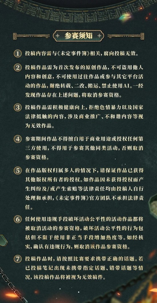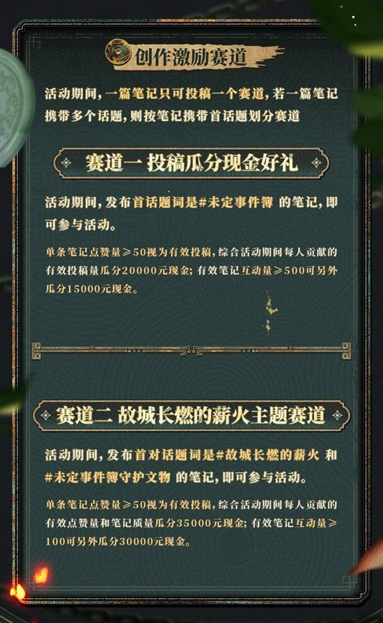 活动期间,发布首话题词是#未定事件簿 的笔记,即可参与现金瓜分活动。