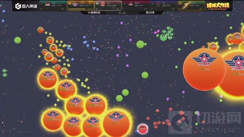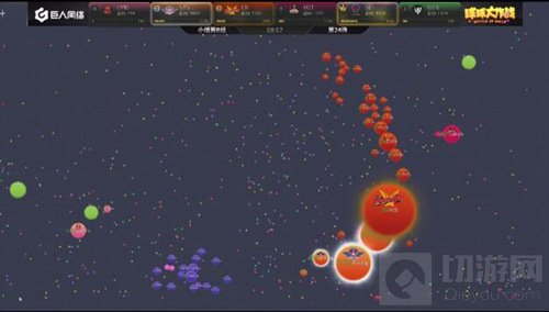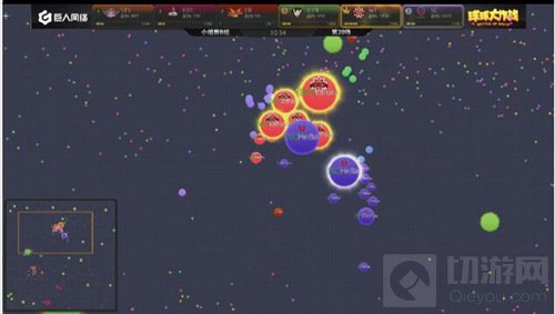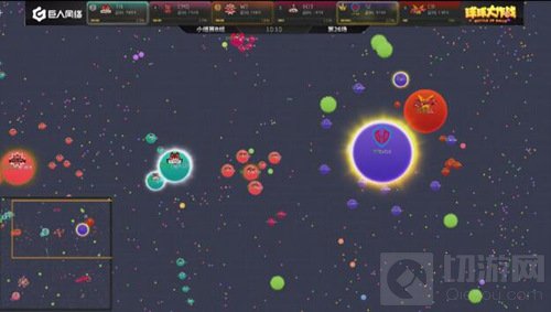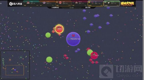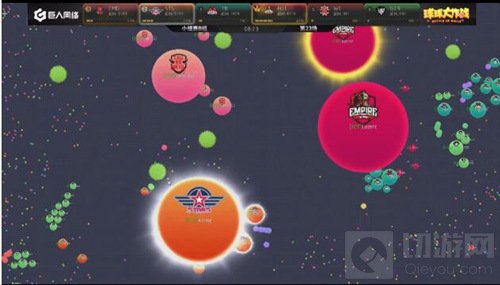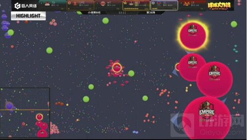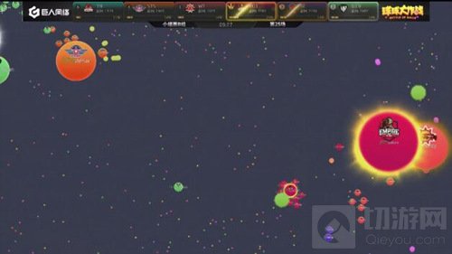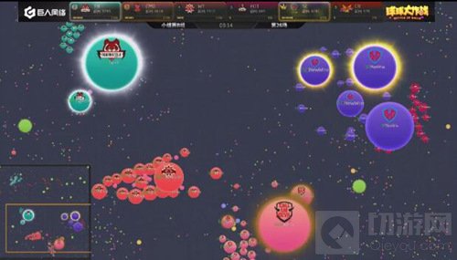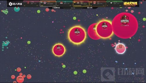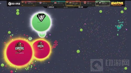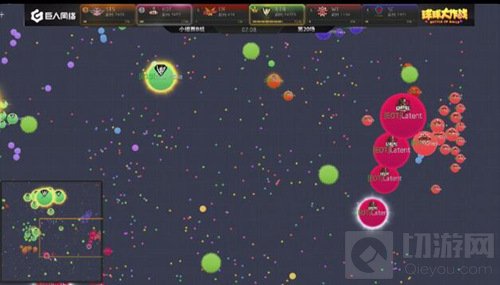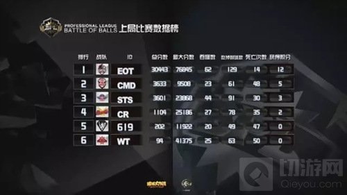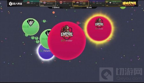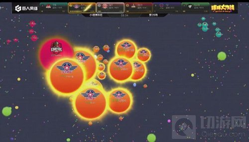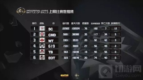 现在局面开始反转,EOT开始慢慢的压制SC,双方的队友开始给大球补球,最后EOT吃掉了SC的一个小球。EOT战队在分身过程扎刺没有吃掉WT,而且在双方博弈的时候,CR慢慢发育反超了EOT拿到了本场的第一名。