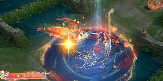 神骥破壁而现,循着地面的菱格奔向队友,绽开连珠纹法阵。当队友使用马年限定皮肤时,则从壁画中释出队友的专属神骥,并绽开对应纹样。大招是皮肤特效的重头戏,神骥奔袭的动态效果配合连珠纹法阵,与马年限定队友组队时还能触发专属神骥替换,团队仪式感极强。