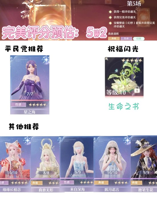 第5关,有很多可用的套装,没抽/没买也可以用星之海!