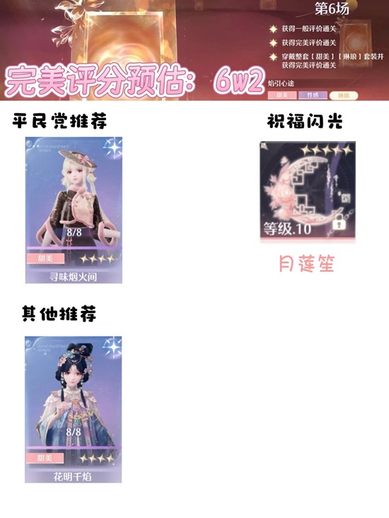 第8关,正好三个免费散件,搭配自己最高分的典雅套装即可!