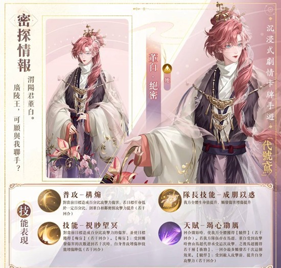 以上就是如鸢全新密探董白技能是什么,董白技能详细解析的全部内容了,更多游戏资讯,攻略内容敬请关注切游网,您的支持是我们努力的动力!