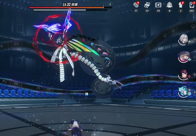 异环斑蝶的战斗分为三个阶段,分别以它的剩余血量作为节点。第一阶段是血量从100%到大约60%,这个阶段Boss的攻击节奏比较慢,技能的前摇动作也很明显,伤害不算太高。玩家可以优先使用单体爆发能力强的角色进行输出,快速压低它的血线,为进入下一阶段做好准备。