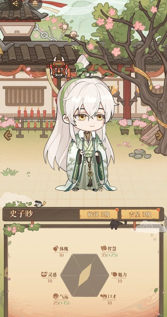 谁是卧底 公孙珊(体健 5级 吉星 2级)+史子眇(敏锐 2级 隐鸢仙人 3级)+李脱(巧舌 2级 仪表不凡 3级)(可能实际上用不了这么高等级,可以边升边看)