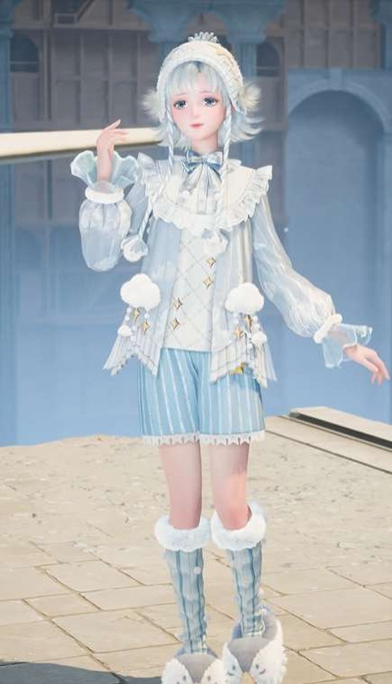 三星套装「浮絮云间梦」—清新属性,含完整部件(发型、连衣裙、外套、鞋袜、配饰等)