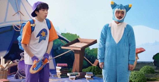 李嘉诚饰演新手小洛克,以少年感十足的演绎与搭档形成强烈反差。剧情复刻了游戏内捕捉精灵、学习技能、骑乘探索等核心玩法,其中"人骑精灵"桥段被夸张极致化——张兴朝跨坐在扮演精灵的李嘉诚背上狂奔,配合"Dimo的设定就是这个样子"等魔性台词,被观众疯狂玩梗"骑乘被玩坏了",瞬间刷屏热搜。