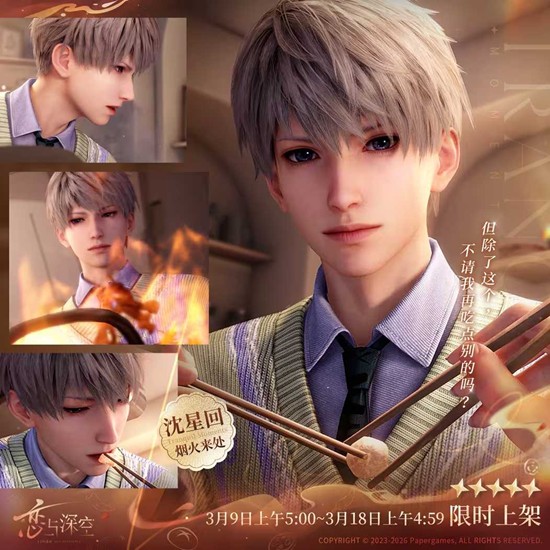 一场烟火气十足的浪漫邂逅即将上演!《恋与深空》今日公开沈星回全新五星思念「烟火来处」PV,平日里冷静神秘的深空猎人此次系上围裙走进厨房,为你亲手烹制专属的家庭火锅——只是这顿晚餐,似乎藏着意想不到的"惊喜"?