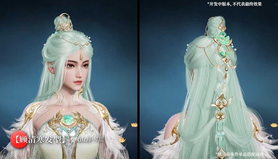 顾清寒极品时装【观山海・白泽】:以通晓万物的祥瑞之兽白泽为灵感,银白主色调搭配流云纹饰,展现顾清寒清冷出尘的仙气。