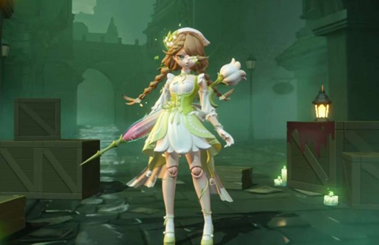 春日物语以春日复苏为设计核心,裙摆上铃兰悬垂如梦幻的铃铛,无声摇曳着对幸福归来的期许。纯白的色调搭配细碎铃音特效,仿佛一阵呢喃耳语在夜风中回荡。这款时装不仅在视觉上带来清新春意,更通过精致的细节处理,让海瑟在追捕过程中也能展现出独特的优雅与梦幻。