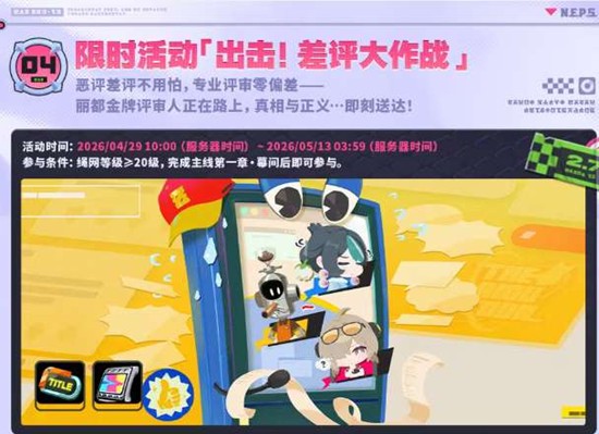 活动时间:2026年4月29日10:00(服务器时间)至2026年5月13日03:59(服务器时间)