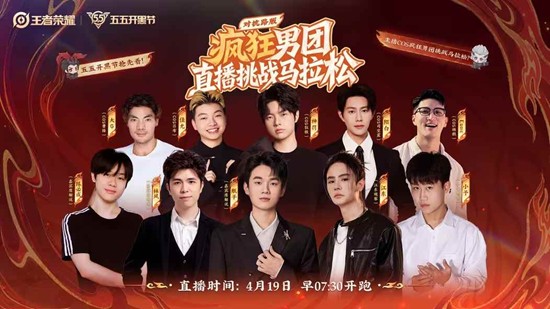 疯燃不止峡谷,热血挥洒跑道!2026年王者荣耀五五开黑节前瞻活动将于4月19日早07:30以"对抗路疯狂男团马拉松"直播形式正式开启,主播COS对抗路男团挑战半程马拉松,同步揭晓五五开黑节版本第一弹福利内容。
