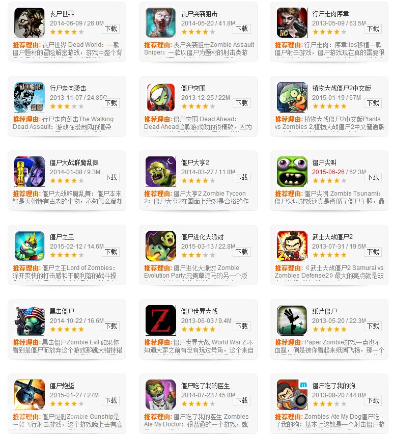 就是杀掉丧尸以免被感染,不断逃生,不断阻碍丧尸的进攻。那么在这么多类型的丧尸游戏中,对玩家的要求是什么呢?由于多为射击类、策略类的游戏,而且是游戏世界观中最主要的东西,因此,玩家拥有强大的武器、精准的射术、颇有远见的策略是非常重要的。但这并不是丧尸题材的独特优势呢。仔细比较各类型游戏,发现,在好平常的休闲益智类游戏、卡牌类、跑酷类等游戏类型中融入了丧尸元素增添了许多趣味。
