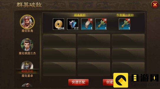 在《无双之刃》里面,群英破敌为多人组队副本,共有7名魔化BOSS等着玩家组队挑战。没有足够战力不要单人匹马去闯关。每个BOSS的奖励都是不一样。每个房间组队人数上限为3人。