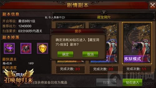 值得一提的是,由于从骷髅王殿到藏宝洞穴的所有剧情副本挑战次数购买都统一价格,因此对于高玩们来说,购买孵化之地和藏宝洞穴的挑战次数便已经足够!