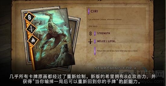 游戏性方面,大体与巫师3中一致,主要的变化是加入了更多具有新机制的卡牌,以及每一小局抽2张牌的新机制。