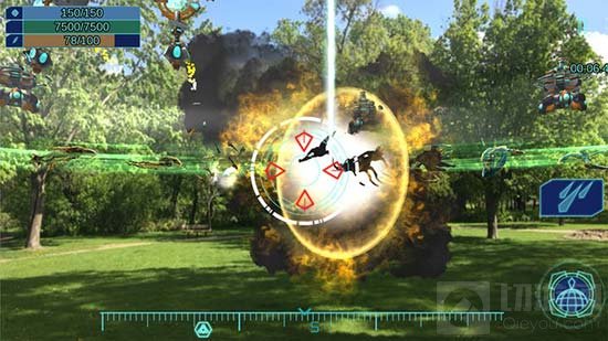 在游戏中玩家可以通过GPS抓取到的地图资料,在自家周遭环境部属防卫炮塔,让它们协助玩家保卫家园的安危。此外游戏有时候也会赋予玩家特殊的任务,这时就必须前往指定的地点,在战场前线透过研发取得的高科技武器歼灭敌人。