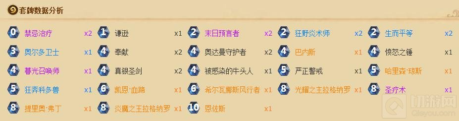 结语:这套卡强度高,稳。一个能抓所有主流职业的卡组难道还不够强吗?只是需要更多的练习,我本身也是一边打一边熟练这个卡组,如果熟练的话这套牌胜率会更高,而且用别人基本都不用的卡组上分不也是一件很令人自豪和愉悦且美滋滋的事情吗?最后祝大家包包金橙,月月传说=。=