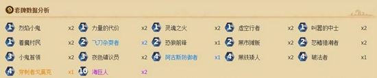 黑铁、戈莫克、海巨人、破法者是这个卡组的核心,靠低费怪是打不死人的,由于术士出色的过牌能力这几个核心虽然少但是很难抽不到,不过除了海巨人外其他怪的血线都在4血及以下,不能避免横扫、烈焰之类的aoe。力代、魂火和夜色就不讲了,同样术士优质的低费怪也没啥好讲的地方因为如果你需要的是那一费的怪那么除了这张没有更好的选择了。叫嚣被砍以后对术士有点伤,如果第一回合抽到叫嚣最好换掉,叫嚣现在基本属于半法术卡了主要作用就是帮助低解高。飞刀的使用要尤为注意,很多人以为飞刀是核心其实不是的,飞刀很多时候是拿去骗解的,而且有飞刀在的时候切忌不要铺场过渡否则一个aoe全死光你还没有后手。恐狼主要是辅助多解一,由于恐狼加的那一点攻多数情况下是不能辅助单换单的所以自带一只。李奶奶找牌优先找力代或魂火,如果有急用死亡缠绕、女箭手也是可以的,鲜血小鬼真心要看情况和运气很多时候他并不能帮助躲aoe。鱼人主要是一拖二来给夜色叠攻击的或者给飞刀叠刀的。小鬼首领和着魔村民的特效可以让他们在aoe后还有怪留场,千万不要轻易拿去换。阿古斯的主要作用就是给怪加一口血这样aoe就斩不了他们了。
