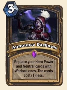 弃明投暗 (盗贼法术) - 将你的英雄技能和中立牌替换成术士职业牌。这些牌的法力值消耗减少(1)点。