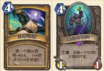 为什么要把这俩张牌一起讲呢,首先因为王者祝福其实是一张有一点点亏节奏的buff卡,更多的时候他应该是用来提升斩杀线的,但因为411(暮光召唤师)的存在,给了这张牌可怕的发挥空间,4费上了411,对面若直接无视,5费贴上王者祝福,这将会是一个多么的恐怖的存在…其他时候的用武之地就不再赘述了,只要能赢,怎么用都可以!