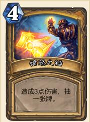 上文我有提到,奶骑其实也是拥有可怕的斩杀线的,愤怒之锤就是起到其中重要作用的一张牌,必要时还能用来打3解场,外加过牌,到后期,配合佛丁5攻武器,基本可以砍到对面一头雾水!这么屌,为什么不带?