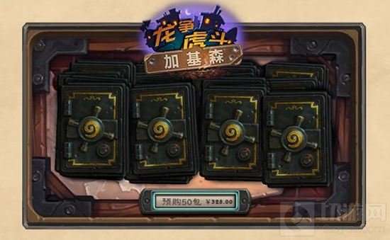 想找几个新盟友保护你吗?找我就对了——来看看这。现在,你只需花上328元,就可以预购50包龙争虎斗加基森的卡包。别担心,我在加基森银行的朋友会帮你好好保存在金库里边,直到扩展包正式上线。那里很安全,我保证。