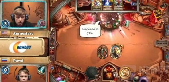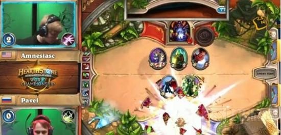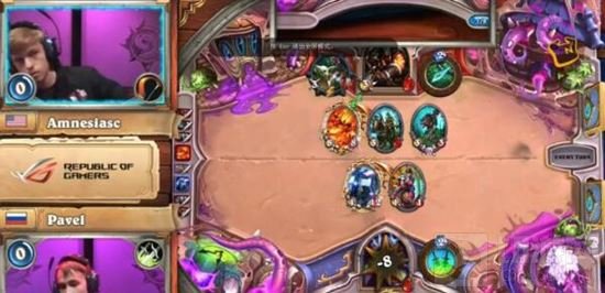 后手的Pavel抓到三个加速,而Amnesiasc没有成长,所以在开局节奏落后了不少。Pavel在套牌中带了黑暗鸦人,这个优质的随从给Amnesiasc带来了不少麻烦,而Pavel紧接着拍下奥术巨人下回合要求斩杀,Amnesiasc没能找到解牌,只能认输。