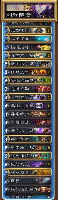 实测吊打萨满。技巧基本上就是反复清场。需要注意的是这样的牧师打萨满手牌很重要,所以环必要时可以配合北郡和炎术士刷一大波牌。有牌在手就不用怕萨满任何铺场了。