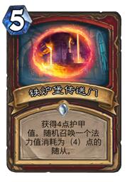 传送门:这牌真的强,又加甲又战场和小德的传送门是差不多的,但是可以配合盾猛对防战的契合度满分。而且4费的亡语也贼多,后期恩佐斯还能拉出来,赚的要死。