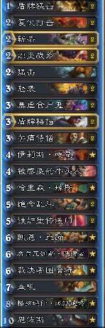 萨满:前期有没有小斧子是关键,食尸鬼是超模牌,配合小斧子或者猛击能解决萨满前期的生物。乱斗一定要使用好,因为中速萨强的就是铺场,什么时候用呢,5个怪左右,但是必须有威胁性随从(雷霆崖,火元素,深渊魔物),现在萨满都会带螺丝,所以一个AOE配合斩杀是必需的。如果能在中速萨面前把护甲堆起来那这局就好打很多,盾猛也能发挥更大的作用。Tips:盾牌格挡配合盾猛能吃大多数的随从,要小心使用,解除最大威胁。