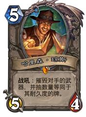 哈里森:这张是针对性贼强的卡,现在都是人手一个,对付萨满、猎人、战士、盗贼甚至是骑士都是一个关键的胜负手,特别是对于萨满和猎人。