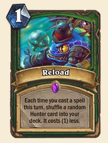 重载 (猎人职业法术紫卡) - 本回合每施放一个法术,便随即将一张猎人的职业卡置于你的牌库中,并使其费用降低(1)点。
