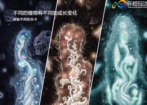 《Grow》以“突破成长”为主题,主角是生长于黑暗世界中的植物,玩家操纵这些植物的种子完成从生根发芽、到破土生长、再到开花结果的全过程,充满着文艺的气息,和光影交织的美感。当植物突破黑暗邪恶生物的包围,破土而出来到光明的世界,仿佛我们自己也随之重生了一般!陈虹曲在接受采访时也表示,《Grow》就是一款单纯的想要带给人快乐的游戏。