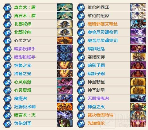 和猎人相比,牧师在快攻的方面,英雄技能差了一万个级别,但是因为奥金尼和暗影之握的存在,也不愿意用鱼人爵士替换掉牧师加血技能。构成了这套奇特的快攻卡组。
