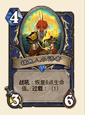 锦鱼人水语者:由于新版本刚刚更新天梯茫茫多的打脸战带一张,4费奶6非常厉害还能buff天师所以我选择带了一张。