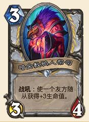 暗金教鸦人祭祀 :同样是帮助缓解场面的,尤其是给苦痛或者炎术士之后大大增加其威胁,但是卡手的风险也比较大,最后并没有选择。