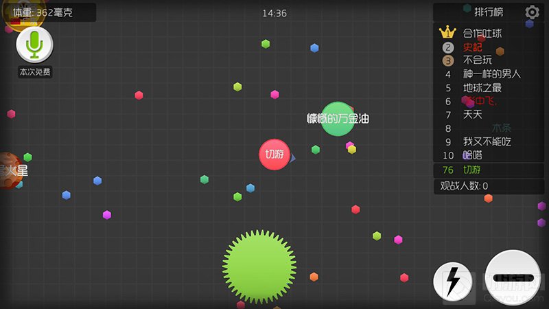 如果有个大球追你 因为大球移动速度比小球低 你可以选择点击右下角的减号来分裂 达到加速的目的。