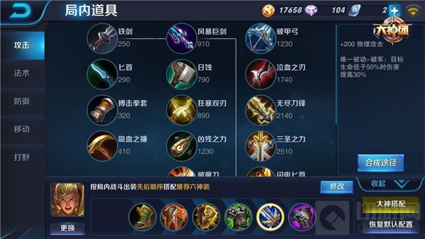 半肉核心装备:红莲之凯、军团荣耀、振兴之凯、破军