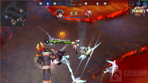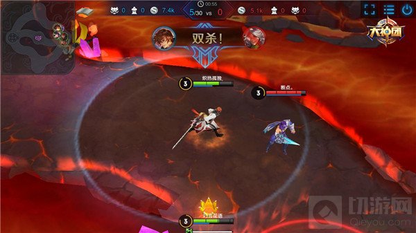 在火焰山大战中,李白虽然是一个脆皮的刺客,但是却可以抢先手去消耗大波敌人的血量。在适当且相对比较安全的区域直接用1技能向前突进,最好是第二段位移时可以冲入敌方阵营之中,可以借助小地图来判断距离。在顺利突入敌方阵容后,迅速放出2技能,对多个敌人进行攻击并减速敌人,此时运气好,可以接火球技能将某一个敌人击退到岩浆中。