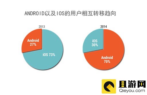 根据GameK.vn的调研,2013年Android系统上玩网络游戏的玩家用户只占27%,跟iOS系统的(73%)相比之下显得比较少。但是,Android系统基础设备生产厂商针对设备的界面以及售价进行激烈竞争的情况下,非常意外的是2014年已经成为见证Android和iOS俩个操作系统用户转移的一年:Android系统:70%,iOS系统:30%。