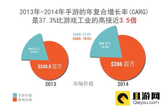 手机游戏占据总营业流水的13.9%,并且正在处于快速增长状态