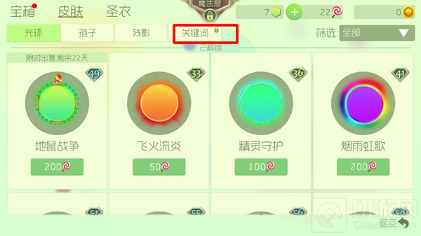 需要大家开启宝箱功能,才能解锁关键词皮肤系统。因为关键词皮肤需要大家开宝箱收集皮肤碎片。