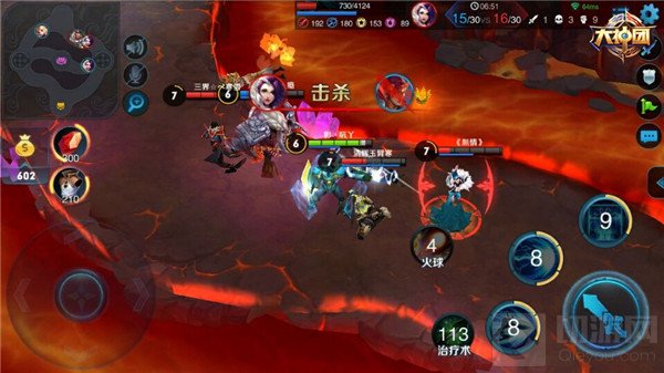 火焰山中火球初始是一个普通的火球,玩家可以通过击杀野怪让火球的能力得到进化。击杀野怪后会得到增加火球威力的BUFF,墨子属于切入型的战士英雄,和平漫步瞬间切入敌阵,释放晕眩后找准位置释放三连火球,将尽可能多的敌人打落岩浆之中。