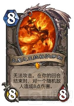 拉格纳罗斯经常在控制和中速套牌中出现,甚至会作为某些快攻套牌中的主攻牌。这张8费卡牌的高血量和即刻效果会让你在套牌构建时自问:“这张8费随从比拉格纳罗斯好吗?”,而不是“这张8费卡牌是不是我这种套牌的最佳选择?”由于拉格纳罗斯始终是7-9费卡牌中最便利的选择,所以许多此类卡牌几乎从未见过天日,更别提有些套牌只会加入一张7-9费的卡牌。