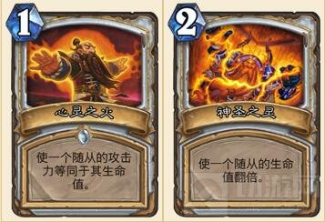 神圣之灵+心灵之火:这是核心的进攻能力,先用神圣之灵在用心灵之火,而且这些法术的很低,一般情况下你只需要用到2张神圣之灵和1张心灵之火,总计也就是5点费用,恰巧是这5点费用可以使得你有足够的费用来使用沉默这个技能使得随从能够进攻,以傻子为例,两张神圣之灵能够使其获得20点的血量,因此也能造成单次20点的攻击力。但是这两张卡是需要斩杀的时候用,所以前期一般不需要去考虑留下来。