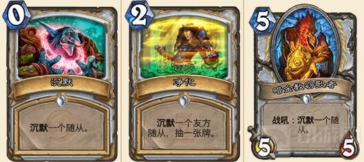 沉默+净化+暗金教切歌者:为什么这套卡组能够成型,很大程度上是依赖于目前牧师的沉默体系变多的情况,从上面我们可以看到在这套卡组中我们拥有3张沉默体系,并且有2张费用都是比较低的,能够配合较多的卡牌使用。同时这些沉默里面有站场、有过牌。在沉默的使用上需要记得先沉默后buff,切记不要打错了!